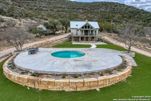| Remarks | $Heaven on Earth now exists in Leakey TX. Situated on 42 acres with a range of topographies including approx.. 600 Feet of West Prong of the Frio River, mountain terrain, Pecan bottom flats with 200 year old Pecan trees, wildlife galore and so much more to even list. Wonderfully situated with unbelievable Westerly views of the entire area sits a well designed completely renovated 2-story that boasts 4 bedrooms and 3.5 full baths with new plumbing, HVAC, electrical and reworked high pressure water well with a 5 stage reverse osmosis water filtration system. Large 2nd floor porch with views over the custom built swimming pool completely surrounded by turf grass and fire pit where a lifetime of memories can be made, not to mention tremendous views of the West Texas Hill Country. Included is approx.. 560 Sq ft shop/storage room located within walking distance of the house to store your ATV, tractor, Summer supplies and many others. Completely custom furnished with large mirrors/art work that make you feel like you're staying at a 6 star resort. Private, quiet, peaceful, end of the road ranchette that will make you the envy of the town for generations. Make your appointment today to see this gem before someone else does! |