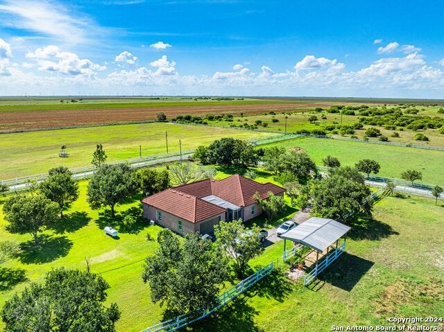 Property Description: Property Description: Private, beautiful horse facility, farm life, and luxury are all words that can describe this 50 acre estate. This property has great out buildings, 14 stall horse barn, it is fenced and cross-fenced and has 6 wells on it. it is conveniently located between Highway 37 and 77. A beautiful pond with a large outside pavilion makes this home a wonderful place to entertain all of your company. Come visit this wonderful property and fall in love. The interior of this home is just as impressive with 14 foot ceilings in the living room and master bedroom and 12 foot ceilings throughout the rest of the house. This home also has a propane generator that operates the entire property in case of hurricane related power outages, and a beautiful venue that rents for $5,000 a day and can accommodate 250 people.