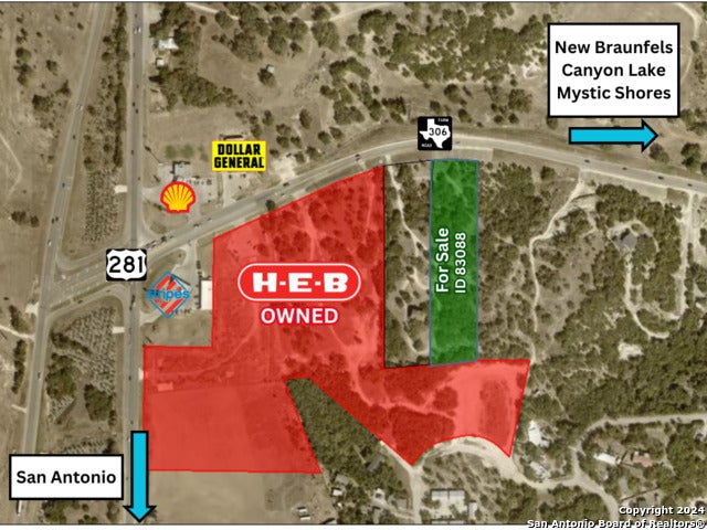 Seize this great opportunity to own 3.282 acres of prime land, ideally located next to the proposed HEB at the intersection of US Hwy 281 and FM 306. This strategic location offers unmatched visibility and connectivity, just 24 miles north of San Antonio and half a mile east of US Hwy 281 on FM 306. Key features include a total of 3.282 acres (adjacent lot is also for sale for a total of 6.56 acres if both lots are purchased). The area is home to major developments such as a Home Depot Store and Tractor Supply, both within approximately 10 miles, as well as the Creekside Retail Center and Creekside Office Building, which enhance the commercial appeal. Additionally, a corner gas station remodel further underscores the area's growth. The property is surrounded by a mix of new and established single-family subdivisions, reflecting the area's ongoing expansion and demand, including being just 7 miles from Mystic Shores. This parcel is ideal for various commercial ventures, from retail and office spaces to mixed-use developments. With the rapidly expanding local infrastructure and growing residential communities, this is a prime location for investment and growth. Don't miss this exceptional opportunity to position your business in a thriving area poised for continued expansion.