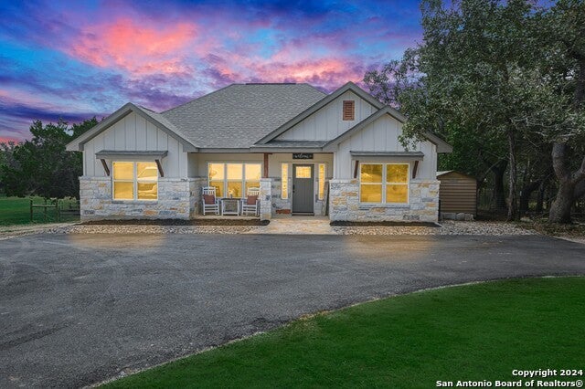 Welcome to this Texas Hill Country gem! Nestled on over half an acre, this nearly new 3-bedroom, 2-bathroom home offers a blend of modern comfort and serene country living. Built just 2 years ago, this residence is move-in ready with contemporary finishes throughout. Step inside to discover an open-concept layout with natural light streaming through large windows, accentuating the spacious living areas. The kitchen features sleek countertops, a breakfast bar, and stainless-steel appliances, seamlessly flowing into the dining area, perfect for both entertaining and everyday living. The fully fenced backyard offers a secure and private outdoor retreat, ideal for pets, family gatherings, or gardening. The large covered patio extends your living space outdoors, where you can relax and take in the scenic surroundings. Enjoy the convenience of easy access to nearby amenities while embracing the tranquility of the Hill Country setting. This property is a perfect escape with all the modern conveniences-a rare find that truly captures the Texas Hill Country lifestyle!