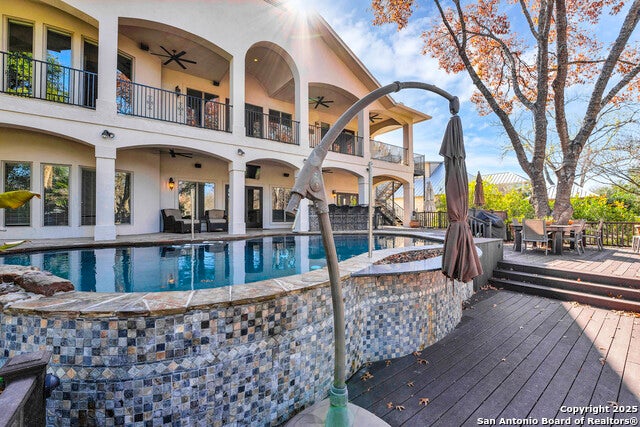 | Remarks | $Welcome to 514 Woodlake Drive on Lake McQueeney! This 4300 sq ft home has it all! The main house is upstairs with a great room and views of the lake. Beautiful wood floors and a gas log fireplace warm up the space. French doors lead outside to the large covered porch that overlooks the pool and lake. The large kitchen is fit for a chef with 6 burner gas cooktop, double GE Monogram ovens plus built in GE Monogram refrigerator, walk in pantry, island kitchen plus breakfast bar. The main dining space is right off the kitchen with an abundance of windows and great views. The master bedroom suite has outdoor access to the patio, wood floors and a large bathroom suite with soaker tub, walk in shower, double vanity and his/her closets. There is an upstairs guest suite, full laundry room and powder bath. Off the entry is the office with outdoor access to the front porch and the elevator which takes you downstairs to the guest area. Downstairs you'll find another full kitchen, game area and second living room, plus 2 additional bedrooms, a jack-n-jill bath, a second convenient stackable washer and dryer for guests, plus a bunk-room/playroom. Head outside to the backyard and lake fun, with an outdoor kitchen, pool and tons of deck space perfect for entertaining. Down by the lake, you'll find a firepit, jet ski ramp (or swim platform) and boat house with concrete sundeck. |