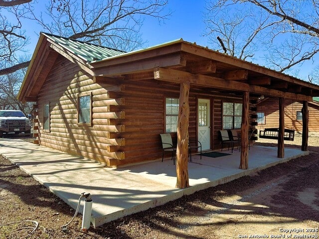 **Investment Opportunity at Frio Pecan Farm!** This charming 2-bedroom, 1-bathroom log cabin is an established, fully-furnished, turn-key rental located along the scenic banks of the Frio River, where owners and guests can easily relax in the sunshine and enjoy the cool waters. Situated in Leakey, TX, this popular vacation resort also serves as a well-known venue for weddings and private parties, featuring a 7,000 sq. ft. pavilion with a fully equipped commercial kitchen available for rent. The resort grounds include a beautiful, well-maintained pecan orchard that provides a tranquil atmosphere, where deer and other wildlife roam freely. As an owner of this cabin, you can enjoy up to 100 nights per year at the resort by paying only cleaning/resort fees, while rental income helps cover your carrying costs.