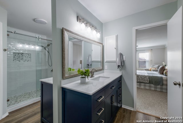 Remarks | $This beautifully RENOVATED home boasts stunning updates throughout. The kitchen is a chef's dream, featuring sleek granite countertops, oversized island, crisp white cabinetry, and top-of-the-line stainless steel appliances. A huge walk-in pantry offers ample storage space, and the recently replaced dishwasher ensures modern convenience. The master bedroom is a true retreat, with a fully renovated en suite showcasing luxurious Zellige tile, dual vanities, dual closets, and a tiled, oversized glass walk-in shower. Fresh interior paint brings a modern feel to every room, while the new LVP flooring on the first floor adds both elegance and durability. Secondary bathroom has been renovated with the same high end finishes used throughout. With two spacious living areas and two dining areas, this home offers plenty of space for entertaining and everyday living. A stylish wood accent wall adds a touch of charm to the home's interior, making this property a true standout. Step outside to a huge backyard that's perfect for both relaxation and fun. The oversized, covered back patio offers plenty of space for outdoor entertaining, while the fire pit creates a cozy atmosphere for evenings under the stars. For those who enjoy sports, the concrete basketball court provides hours of active enjoyment. Additional updates inside include new ceiling fans for added comfort, updated outlets with Wi-Fi capabilities, and a new garage door opener for convenience. Award winning schools, easy commutes and close to JBSA - Randolph, this amazing property won't last long! |