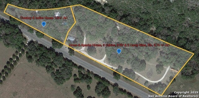 Remarks | $Refer back to MLS1792003 This property is being sold in a whole as well as divided out. This portion is Priced for 6.53 +/- acres with 2 Houses, 5 Cabins, 8RV Sites, 2 Tent Camping Sites and Bathhouse located 1/2 mile for the Frio River in Concan, Texas |