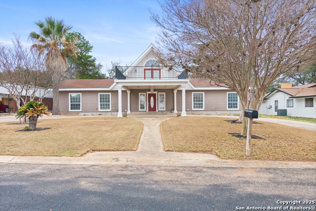 Welcome to your dream home in Devine! This stunning five-bedroom, two-bath residence is perfectly situated by the peaceful golf course, offering both convenience and tranquility. Step inside to discover spacious bedrooms that provide ample room for relaxation and privacy. The heart of the home features an inviting open kitchen and dining area, perfect for entertaining family and friends. Enjoy cozy gatherings in the separate living room that boasts natural light and warmth. The expansive backyard is an outdoor oasis, complete with a covered patio-ideal for year-round enjoyment. Additional perks include extra storage space and a versatile room that can be tailored to your needs. Experience the added luxury of a beautiful balcony that overlooks the lush golf course, a perfect spot for morning coffee or evening sunsets. The front of the home welcomes you with a circular driveway and a covered patio, providing convenience and shelter for all your arrivals and departures, no matter the weather. Don't miss out on this exceptional opportunity to make this serene and spacious home yours today!