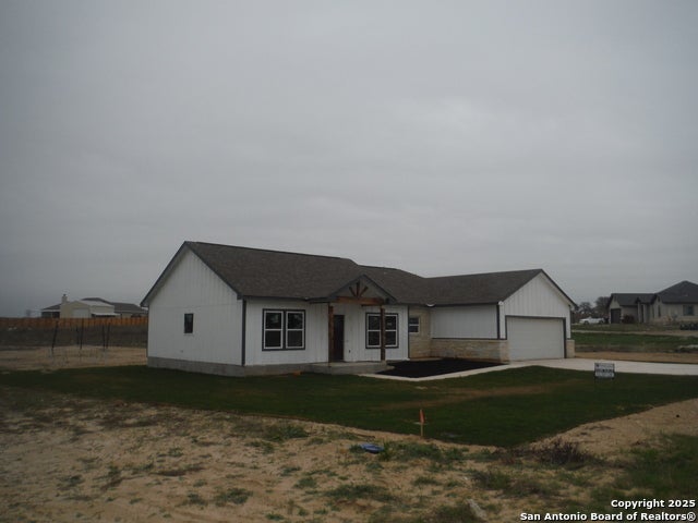 New Custom home in Las Palomas Subdivision. This home sits on a large corner lot in a rapidly developing subdivision. Home opens into large open and spacious living room kitchen and kitchen island. The Master bedroom is split from the other bedrooms. Master is large with walk in closet and large tiled shower. The garage is built for large vehicles it is approximately 500 Sqft. This home is 15-20 Minutes from San Antonio and qualifies for USDA Financing.
