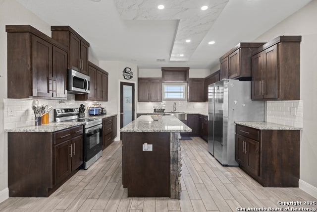 | Remarks | $Welcome to your new home! Here you have a custom-built, single-story residence nestled on a serene 1-acre lot in La Vernia, Texas. This thoughtfully designed home offers 4 bedrooms and 2.5 bathrooms, providing ample space for comfortable living. Upon entering, you'll be greeted by an open-concept layout that seamlessly connects the living, dining, and kitchen areas. The high vaulted ceilings with ambient lighting create an inviting atmosphere, while the energy-efficient features, including roof foam insulation and LED lighting, ensure modern comfort. The gourmet kitchen is a chef's delight, boasting custom-made solid maple wood cabinets, granite countertops, and under-cabinet lighting that enhances both functionality and style. Wood-like ceramic flooring adds warmth and elegance throughout the home. The spacious master suite serves as a private retreat, featuring a luxurious en-suite bathroom with a jacuzzi tub, a generous walk-in closet, and dual vanities. Three additional well-appointed bedrooms offer flexibility for family, guests, or a home office. Step outside to the expansive covered patio, perfect for outdoor entertaining or simply enjoying the tranquility of the surrounding landscape. The property's generous size provides ample opportunities for gardening, recreation, or future enhancements. Located in a quiet and well-spaced neighborhood, 129 Summer Meadow Drive offers the perfect blend of rural charm and modern amenities, making it an ideal place to for years to come. |