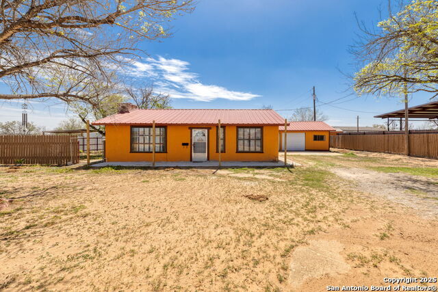 Experience country living at its finest with this 3-bedroom, 1-bathroom home situated on over half an acre of unrestricted land. Bring your horses, chickens, or other animals to make the most of this spacious property. The updated kitchen features modern cabinets, countertops, white appliances, and a stainless steel refrigerator. Tile flooring runs throughout the home, complemented by an abundance of windows that flood the space with natural light. The metal roof was replaced 5 months ago as well. The primary bedroom is a standout with vaulted ceilings, rustic wooden beams, and a cozy fireplace. An attached 2-car garage includes a work area, adding functionality to the property. Outside, you'll find a versatile chicken coop that can also be used as a dog kennel. With two main entrances to the property and plenty of space to expand, the possibilities are endless. Conveniently located near IH-35, this home offers the perfect balance of rural tranquility and urban accessibility. Enjoy a short drive to stores, shopping, schools, and restaurants. Don't miss this opportunity to own a charming rural retreat with endless potential-schedule your showing today!