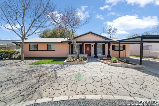 In ground pool (28x12), metal roof, circular driveway, stainless steel appliances, island kitchen w/granite counter tops, chandelier above island kitchen, artificial turf front and back yard, covered back patio, parklike backyard, ceiling fans throughout, update HAVAC, inside utility room, separate office, no residential neighbors behind, convenient to downtown. Shows well. You won't be disappointed.