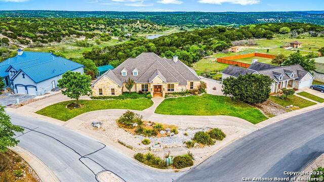 Remarks | $Stunning Views! Nestled on half an acre, this beautiful 3-bd, 3-ba home also features a dedicated office. The open floor plan seamlessly connects the living room, kitchen, & breakfast area, all highlighted by high ceilings, custom alder wood cabinetry, & a gorgeous gas starter rock fireplace w/gas logs. Hardwood & slate flooring add to the home's charm, & walled windows offer breathtaking hill country views. The kitchen is a chef's dream, equipped w/top-of-the-line appliances, including a built-in refrigerator, gas range, microwave, wine fridge, dual sinks, & beveled granite countertops. The expansive laundry room offers ample space for an extra freezer or refrigerator. The large primary includes an en-suite bath w/a jetted tub, walk-in shower, & generous closet space. The office is thoughtfully designed w/built-in shelving & glass doors. Two guest rooms are included, one of which has its own en-suite bath. The east-facing back deck is perfect for enjoying evenings while taking in the stunning scenery, & the 25' covered porch features a built-in outdoor kitchen. Conveniently located near hospitals, restaurants, shopping schools, & more. Experience the finest in quality living. |