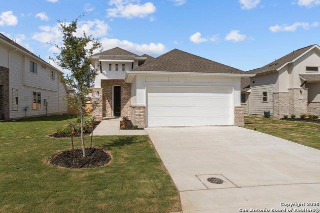 Introducing the stunning Hale plan, offering 2,119 square feet of thoughtfully designed living space and making a bold statement with its striking Elevation D curb appeal. Featuring 4 bedrooms and 3 full baths, this home is perfect for both family living and entertaining. The thoughtfully designed layout places 3 bedrooms and 2 bathrooms on the first floor, while the fourth bedroom, bath, and a spacious game room are located upstairs for added privacy and versatility. As you step inside, you're greeted by a bright, airy atmosphere and upgraded kitchen. Featuring elegant backsplashes and countertops, the kitchen is designed for both style and function, making it perfect for culinary enthusiasts. The primary suite is a luxurious retreat with a separate tub and shower, offering the ultimate relaxation. Notable upgrades include 8-foot front and interior doors, upgraded LVP flooring and meticulous attention to detail in every corner of the home. This home offers everything you need for a modern, comfortable lifestyle. Don't miss out-schedule a tour and make it yours today! Move In Ready in April '25.