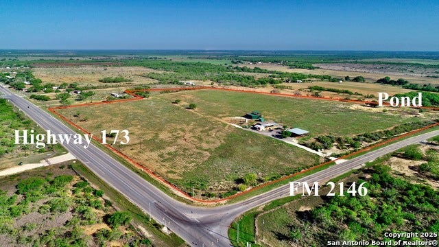 PRICE REDUCED!! This is a High Traffic Corner property in the Eagleford Shale region of South Texas, just outside of the Jourdanton City limits. The property is a little over 32 acres and has approximately 1,000 feet of Highway 173 Frontage as well as 1,500 feet of frontage on FM 2146 more or less. The current owners recently installed a 2024 model mobile home that cost around $120,000 not including all of the expenses involved in having it transported and installed in place. Other improvements they have made have estimated values as follows: Approximately $60,000 was spent to build the large 60 foot long deck and roof covering and at least $20,000 was invested stabilizing the ground around the house and the entire driveway with caliche base material and reclaim road millings. Considering the time and effort the Seller has put into improving the property, the list price should not be looked at merely by a per acre basis. Another value to the property is at the time of listing, the property qualifies for an Ag exemption with Atascosa County. The property is serviced by both Benton City Water and a private well. Water not only services the main house and guest house but the barn, entertainment area, storage shed, garden and livestock pens. The property is equipped with an oversized metal barn and separate covered carport suitable for large equipment, Tractors, RV's and excavation equipment. The terrain of the entire tract is fairly level and mostly cleared, providing a blank slate for developers looking to subdivide residential, commercial or industrial tracts. The home has 5 bedrooms and 3 1/2 baths and has a separate living quarters known as "The guest House" which is equipped with a full kitchenette, living room and a bedroom. The property is in close proximately to the cities of Jourdanton, Pleasanton, Devine, Christine and Charlotte and about 40 miles from Downtown San Antonio. There is a pond on the properties North East corner that does not currently have water but a water line from the water well is in place and would need to be repaired to make it serviceable. Pictures do not do this place justice, book an appointment to see this property in person. It is not expected to stay on the market long.