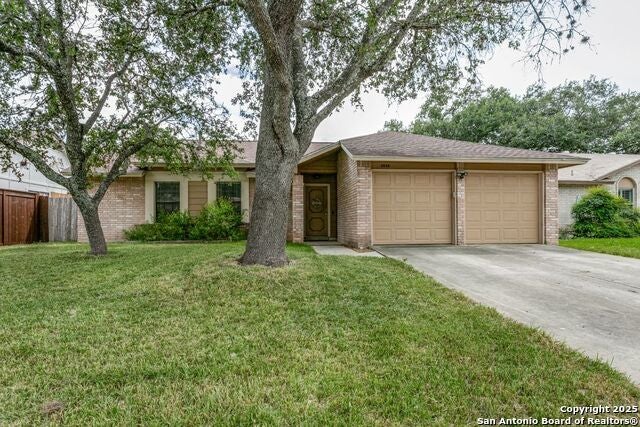 This move-in ready home with recent updates features large mature oak trees in both the front and back yards providing beauty and shade. Inside, enjoy recent updates, including new interior paint throughout, kitchen and bathroom counter-tops as well as fixtures in both and updated light fixtures- April thru July 2025. This home has a floor to ceiling brick fireplace, an open living layout and vaulted ceilings. The primary suite offers two walk-in closets. The roof was replaced in 2021. You'll be just minutes from San Antonio International Airport. The neighborhood has an entrance to McAllister Park which features trails, sports park, and a dog park