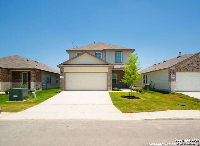 Step inside The Nicole plan, a two-story home featured in Riverstone at Westpointe in San Antonio, TX. Featuring 2 classic front exteriors, 4 bedrooms, 3 full baths and a 2-car garage, this floor plan is sure to turn heads. The Nicole offers 2473 square feet of comfortable living and includes a full bathroom and bedroom located right off the foyer that is perfect for guests. Continue down the hall to find an open concept plan with the family room opening to a gourmet kitchen and dining room. The kitchen includes granite counter tops, stainless steel appliances, shaker style cabinetry and a spacious corner pantry. A kitchen island overlooks the living room and includes a deep, single basin sink and a breakfast bar, perfect for fast mornings on the go. The wide, inviting staircase leads to a spacious game room, utility room, main bedroom suite, two secondary bedrooms with carpet flooring and spacious closets and third full bathroom. Your private main bedroom features an attached ensuite bathroom built with plenty of storage space, a walk-in shower and a separate water closet for the toilet. The grand walk-in closet is a stand-out feature of The Nicole floor plan, complete with plenty of windows for natural lighting. Additional features of The Nicole include sheet vinyl flooring in entry, living room, and all wet areas, granite counter tops in all bathrooms, and full yard landscaping and irrigation. This home includes our HOME IS CONNECTED base package. Using one central hub that talks to all the devices in your home, you can control the lights, thermostat and locks, all from your cellular device.