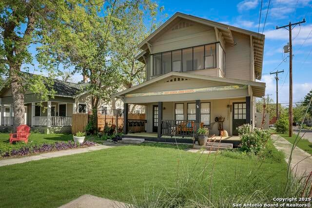 | Remarks | $Historic Mahncke Park home is one of a kind! Formally a non-profit Inspire Art house, setup and zoned for triplex (or Quad). Many possibilities for this charming property to cashflow. Main house includes hardwood flooring throughout. Kitchenette on both levels and a detached garage studio apartment with full bath and kitchen. Secured gated entry at back access to garage apartment and workshop. Only a block from Broadway and close to Incarnate Word, shopping and more! Common utility area shared by tenants. Huge storage/workshop can be found on first level of back unit. Solid investment close to everything, including downtown. Walk to restaurants, and enjoy your life in the historic aspects of San Antonio! |