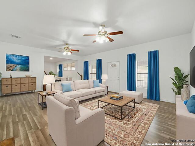 Welcome to your next home in Manor Terrace, located on the Southeast side of San Antonio just off Rigsby and Loop 410! This spacious 3-bedroom, 2-bath residence offers over 1,500 square feet of living space and sits behind a private iron gate with an oversized covered carport for added convenience and curb appeal. Inside, the converted garage has been transformed into an expansive family room-ideal for entertaining guests or creating your perfect media or game space. The oversized covered patio and generous backyard offer privacy with no direct rear neighbors and even include RV hookups, making it ideal for outdoor enthusiasts or extended visitors. Whether you're a first-time buyer or looking for a home you can customize, this property is a blank canvas waiting for your personal touch. Don't miss your opportunity to own this unique home with flexible living space, outdoor versatility, and prime location near shopping, schools, and major highways!