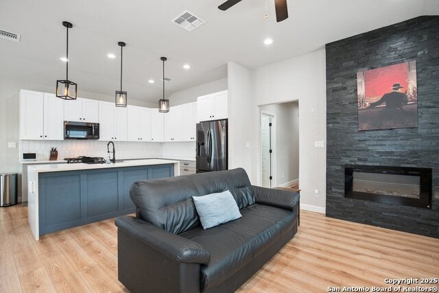 *** Possible Assumption Available*** This professionally rebuilt 3-bedroom, 2.5-bath home in Denver Heights offers modern style and convenience just minutes from the Alamodome and Essex. Reconstructed from the ground up in 2021, the home features a thoughtfully designed open floor plan that's both functional and inviting. The kitchen showcases quartz countertops with a waterfall peninsula, 42" soft-close cabinets, a deep sink, pendant lighting, and Samsung black stainless appliances-including a gas range and overhead microwave. High-end Delta faucets and quality hardware add to the home's polished feel. The primary suite includes a walk-in tile shower, double vanity, and a spacious walk-in closet. A convenient Jack-and-Jill bathroom connects two additional bedrooms, making the layout ideal for families or guests. Major systems and structural elements have all been replaced, including the HVAC, plumbing, electrical, roof, framing, spray foam attic insulation, cement fiber siding on all four sides, driveway, and patio. Durable, attractive flooring flows throughout the home. Whether you're looking for a personal residence or an investment opportunity, this centrally located property is a great choice. It's close to downtown, multiple hospitals, and is Airbnb-ready. Furnishings are optional. Schedule your tour today!