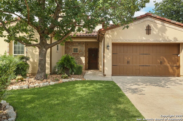 OPEN HOUSE Sept 14th from 2-4PM Welcome to resort style living at Campanas. Residents amenities include HOA-covered lawn care, security monitoring, and exterior maintenance. There is a private clubhouse with a gym, ballroom, library, game rooms, bar, and multiple pools. This stunning Mediterranean style, one-story home, features 3 bedrooms and 2 bath has been freshly painted. Upon entry, you are welcomed by the open layout with 20 foot ceilings and natural lighting. The chef's kitchen overlooks the living room and features stainless steel appliances, including gas cooking and granite counter tops. Retreat to the primary suite which features an extra large walk-in closet, double vanity, jetted tub and walk in shower. Enjoy quiet evenings on the covered back porch. Set on .29 of an acre, the property offers plenty of space for indoor and outdoor entertaining and room for a pool. This home is perfect for the family that is just starting out or the family that is down sizing. The neighbors are amazing here. Washer, dryer, refrigerator, and Level 2 EV charger all convey. Just minutes from shopping, dining, golfing and the JW Marriott. Other neighborhood amenities include, tennis, pickleball, outdoor kitchens, and fire pits. Plus, you'll have access to Cibolo Canyons' additional pools, fitness centers, lazy river, and walking and trails. Easy, upscale living in a home that's ready when you are. Amazing charter and private schools nearby.