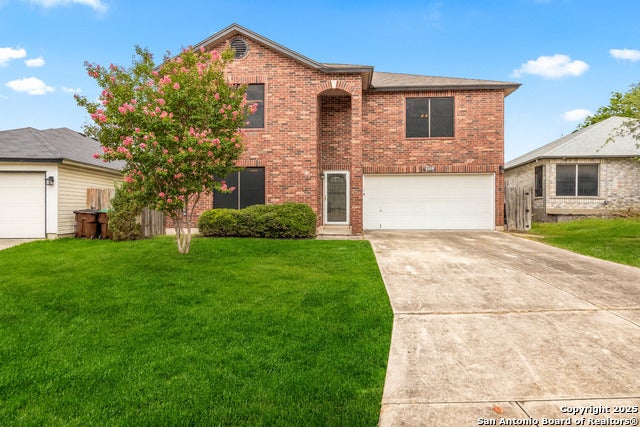 Welcome to 6119 Ferrysage, a spacious two-story home set on over a 1/4-acre lot with more than 2,900 square feet of living space. This 4-bedroom, 2.5-bathroom property features three versatile living areas-including a cozy family room with a corner fireplace and an upstairs loft-offering plenty of room to relax or entertain. The light-filled kitchen boasts abundant windows, a generous walk-in pantry, and easy access to the large covered patio through elegant double French doors. All bedrooms are conveniently located upstairs, including a primary suite with an updated bathroom featuring double sinks, solid countertops, and a walk-in shower. Too many upgrades and updates to list! The expansive backyard backs up to a greenbelt and is shaded by mature trees and includes a storage shed, making this home the perfect blend of comfort, space, and function.