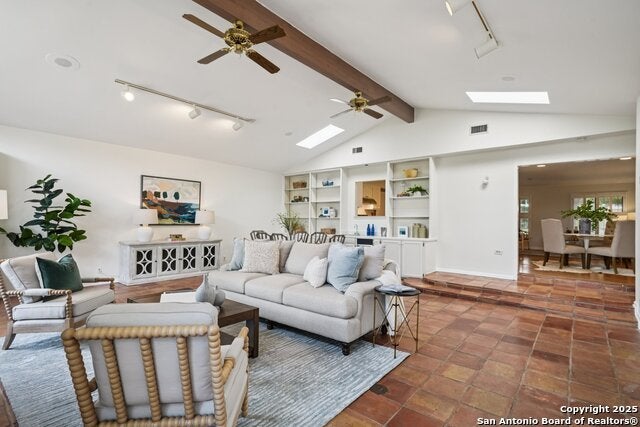Interior | Two Living Area, Liv/Din Combo, Two Eating Areas, High Ceilings, Open Floor Plan, Walk in Closets, All Bedrooms Downstairs, Laundry in Garage, Maid's Quarters, Skylights, Utility Area in Garage |