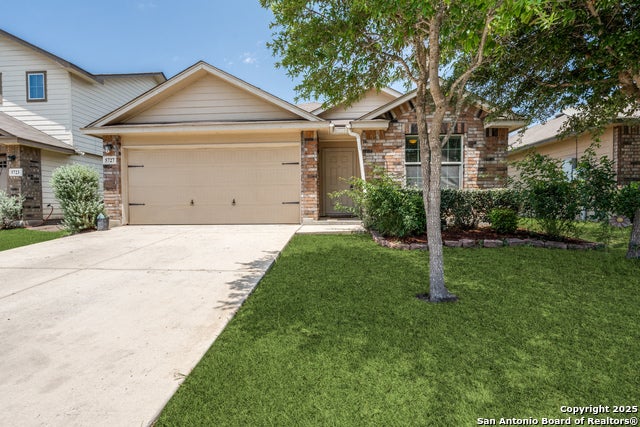 Welcome to 5727 Medina Farm, a beautifully maintained single-story home in a convenient San Antonio location! Built in 2014, this spacious residence offers over 1,700 square feet of comfortable living space with a classic brick front exterior and siding on three sides. The open floor plan seamlessly connects the island kitchen, dining area, and living room-perfect for entertaining or everyday living. The kitchen features ample cabinet space, a functional layout, and a charming decorator's nook for added creativity. This home includes three bedrooms and two full bathrooms, along with a versatile front room ideal for a home office, craft space, workout area, or kids' homework zone. The welcoming entryway provides extra space for storing shoes, umbrellas, and hats-making coming and going a breeze. Step outside to a private backyard with a covered patio, offering a great spot to relax, enjoy morning coffee, or host a weekend BBQ. A privacy fence enhances both comfort and security. Don't miss the opportunity to make this flexible, well-designed home your own!