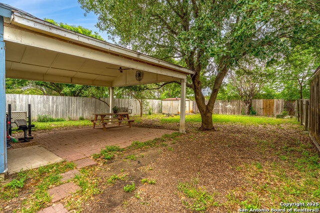 Welcome to your first home, this well maintained 2 bedroom 1 bath home that blends comfort, functionality and convenience all in one fantastic location! Minutes from hwy 1604, quick access to shopping, dining and a short drive to Lackland AFB and Seaworld. Inside you'll find an inviting open concept living and dining area that offers the perfect space for relaxing or hosting family and friends. Towards the front of the home you will find the primary bedroom which connects to the main bathroom which conveniently flows into the central hallway and secondary bedroom. Step outside to your oversized backyard, complete with a spacious covered patio perfect for grilling, gardening or simply enjoying the outdoors year round! Don't miss your opportunity to own this perfect starter home!