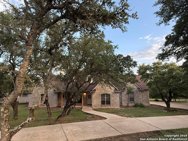 Tucked away in the serene Dresden Wood community, this 2,100 sq ft home on a 1.09-acre lot offers privacy and stunning Hill Country views. Located at the end of a quiet street, the expansive, fenced backyard features mature oaks and cedars, lush landscaping, two patios, a pergola, and storage sheds. A short drive from historic downtown, parks, swimming, biking, and recreational facilities, this home blends seclusion with convenience. Step inside to a pristine kitchen with granite countertops, an island, custom cabinets, a built-in oven and microwave, a new dishwasher, updated outlets, lighting, and a stylish tiled backsplash. The spacious den, perfect for relaxing or entertaining, boasts a floor-to-ceiling wood-burning fireplace, built-in shelving, surround sound, and new French doors opening to the patio. Enjoy wildlife views from the breakfast area or host gatherings in the formal dining room. The updated primary bathroom features a walk-in shower, separate soaking tub, new double vanities, and a large walk-in closet. Two additional bedrooms with new flooring, fresh paint, and ample natural light are situated across the home. Recent upgrades include fresh interior and exterior paint, new porch railings, and a brand-new 30-year roof with a lifetime transferable warranty. The side-entry garage connects directly to the kitchen, while a circular driveway and sturdy detached carport-convertible to an outdoor living space-add convenience. Less than 45 minutes from Fredericksburg and a short drive to IH-10, The Rim, and La Cantera for shopping, this move-in-ready home has low HOA fees. Don't miss this Hill Country gem-schedule a showing today! **Seller paying for Buyer's Broker fees.