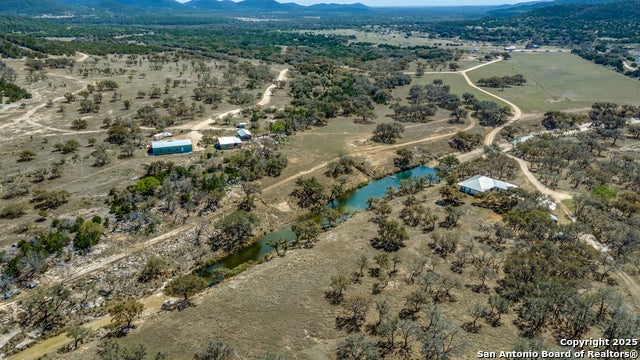 Remarks | $Approximately 323 contiguous acres in northwestern Medina County. 1800 feet of live water on Cascade creek runs through the property with dam that offers amazing recreational options for swimming, fishing, etc. Nice patio overlooks the lake with outdoor fireplace and built in BBQ pit and airconditioned bar. Even in times of low rainfall the creek holds water due to clearing and exposure of natural springs. Property includes a cave with unique aspects. Covered shooting range. 4 improved structures include 6 bedrooms total and 6 baths. Approx 100 acres of grazing land. Excellent caliche roads and recent clearing have recently enhanced this property. A 16 acre high fenced pasture is seeded with coastal Bermuda. Beautiful hilltop rises 280 feet from the valley and offers a beautiful vista for enjoying sunrise and sunset. A must see Hill Country property!!! |
