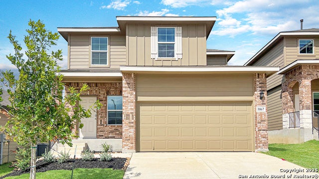 Introducing The Hanna, a two-story home featuring 4 bedrooms, 2.5 baths, and a 2-car garage in Applewood, a new home community in San Antonio, TX. Here you will find a beautiful open-concept layout with 2042 square feet of functional living space. Your kitchen, dining area and family room blend together seamlessly with plenty of room for everyday living as well as plenty of natural light from the large windows. The gourmet kitchen includes granite counter tops, stainless steel appliances, shaker style cabinetry and a kitchen island overlooking the living area. The main bedroom suite is downstairs and features quality carpet flooring and an attached bathroom complete with separate water closet, granite vanity counter top, tiled walk-in shower and a large walk-in closet. The second story includes a full bathroom, a game room, and all secondary bedrooms. Whether these rooms become bedrooms or other bonus spaces, there is sure to be comfort. Additional features of The Hanna floor plan include sheet vinyl flooring in entry, living room, and all wet areas, granite bathroom counter tops throughout the home, and rear covered patio (per plan) over looking full yard landscaping and irrigation. This home includes our HOME IS CONNECTED base package. Using one central hub that talks to all the devices in your home, you can control the lights, thermostat and locks, all from your cellular device.