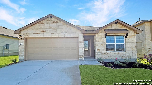 Remarks | $The Bryant is a stunning single-story home featured at Redbird Ranch in San Antonio, TX. The Bryant is sure to impress with its selection of 3 front exteriors, 4 bedrooms, 2 bathrooms and 2-car garage. Welcome guests as they walk through the elongated foyer with a decorative nook wall feature to the spacious eat-in kitchen. Facing the blended dining area and living room, the kitchen includes an oversized island, corner pantry with shelving, plenty of cabinet storage, quartz countertops, stylish subway tile backsplash, stainless steel appliances, and a gas cooking range. The private main bedroom is located at the back of the house and features a relaxing ensuite bathroom complete with double vanities, a garden tub, walk-in shower, and a spacious walk-in closet. If privacy is your top priority, this bathroom comes standard with a separate water closet. Two secondary bedrooms are located off the entry and the other is centrally located off the kitchen. All have quality carpet, spacious closets and windows for plenty of natural lighting. Whether these rooms become bedrooms or other bonus spaces, there is sure to be comfort and functionality. Additional features include tall 9-foot ceilings, 2-inch faux wood blinds throughout the home, luxury vinyl plank flooring in the entry, family room, kitchen, and dining area, ceramic tile in the bathrooms and utility room, and pre-plumb for water softener loop. Relax outside on a covered patio (per plan) located off the family room and enjoy full yard landscaping and full yard irrigation. You'll enjoy added security in your new home with our Home is Connected features. Using one central hub that talks to all the devices in your home, you can control the lights, thermostat and locks, all from your cellular device. |