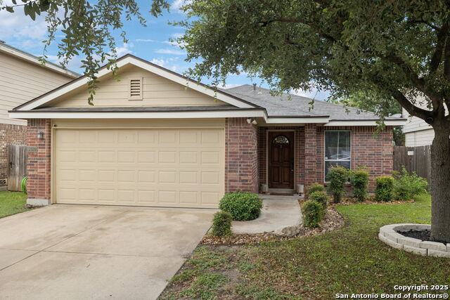 Turnkey 3-bedroom, 2-bath home with a 2-car garage in the popular Wildhorse community. This one-story layout offers an open floor plan filled with natural light and updated lighting. The kitchen features an island, generous walk-in pantry, and an extended counter with cabinetry-perfect for a coffee bar setup. The spacious primary suite includes a walk-in closet and private bath. Enjoy outdoor living with a covered patio and large fenced backyard. Located within walking distance of Krueger Elementary and minutes from Loop 1604, shopping, and dining. Community amenities include a pool, playground, and park.
