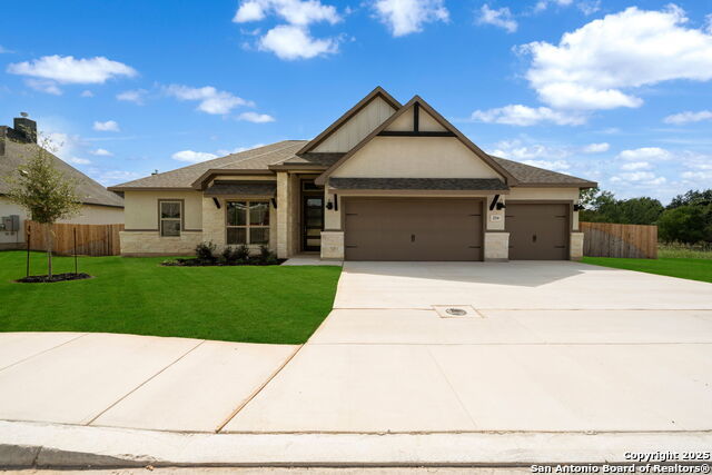Welcome to the Bowie Plan, a stunning single-story residence that perfectly balances luxury, comfort, and functionality. This beautifully crafted home offers four spacious bedrooms, including a lavish master suite featuring an expansive spa-inspired walk-in shower, dual his-and-her walk-in closets, and elegant granite finishes in the master bath. Throughout the home, impressive 8' doors add to the sense of grandeur, while a cozy fireplace in the living room creates an inviting ambiance. The open-concept layout seamlessly connects the living, dining, and kitchen areas, making it ideal for both everyday living and entertaining guests. The gourmet kitchen comes equipped with built-in appliances, ready to elevate your culinary experience. Step outside to a wonderful covered patio, perfect for relaxing evenings or weekend gatherings. Expertly designed with high-end finishes and thoughtful details, the Bowie Plan offers a sophisticated yet practical lifestyle in a single-story format, creating an exceptional living environment you'll be proud to call home.
