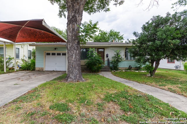 Located in the charming Monticello Heights neighborhood of San Antonio, 206 Laddie Place is a well-maintained 2-bedroom, 1-bathroom single-story home with approximately 1,018 square feet of living space on a 6,599 sq ft lot. Built in 1952, the home features original hardwood floors, a bright living/dining combo, an eat-in kitchen, and a utility area in the garage. Recent updates include fresh exterior paint . The backyard offers a cozy deck, mature trees, privacy fencing, and a storage shed-perfect for relaxing or gardening. The property also includes a one-car garage, a carport, and easy access to major roads and public transportation. Perfect for inspectors or buyers seeking a solid home with classic charm, this property is located in a walkable, dog-friendly community known for its quiet streets and neighborly atmosphere. Schedule your tour today and come see all that this home has to offer!