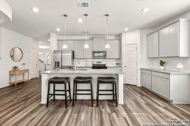 Remarks | $$10,000 PRICE DROP! This inviting two-story home features timeless curb appeal with a stone facade, shutters, and rustic wood beams. Inside, a flexible front room offers space for dining, play, or a cozy sitting area. The open layout includes a tucked-away office nook, spacious living room, and a kitchen with quartz countertops, oversized island, tile backsplash, abundant cabinetry, gas stove, and built-in microwave. The main-floor primary suite offers a spa-like bath with dual sinks, soaking tub, separate shower, and large walk-in closet. Upstairs, you'll find three secondary bedrooms, a full bath, and a loft ideal for entertaining, relaxing, or a home office. A two-car garage and fully fenced backyard complete this well-maintained property, ready for its next owner!! |