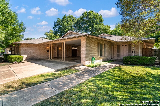126 & 130 Treasure Way | Fully Leased | Alamo Heights ISD. Architecturally mid-century, with a unique feature: the two units do not share any walls. Attached only by the roof they share, this duplex creates a very private environment for the tenants, both from the street and each other. One-story duplex in Alamo Heights Independent School District. Built by L.S. Busby, and designed by Stanford Busby, this property is over 1/3 of an acre, with a large front yard, and 2 spacious private backyards. Each unit is a 2 bedroom, 2 bath. Under the shared carport, each unit has its own private laundry/storage facilities, as well as one parking space each. There is additional pad parking off the side of the driveway for additional vehicles. 126 Treasure Way, the larger of the two, is about 2,065 square foot, 2 bedroom, 2 bath with 2 living areas, 2 dining areas. A sunny entry, lit by skylight, opens to the formal living and dining rooms with a wet bar. The eat-in kitchen has a breakfast room with built-in storage that opens to a family room with sliding glass doors that lead to a covered patio and relatively large, private yard. The primary bedroom is incredibly spacious with a large walk-in closet and access to the covered patio. The secondary bedroom is quite large as well, with access to the hall bath. This unit is leased through April 2026 at $2,300/month. 130 Treasure Way, the smaller unit, is about 1,312 square feet, 2 bedrooms, 2 bathrooms, currently leased through August 2026 at $1,750/month. Entry to the home leads you first to the kitchen, then a large space that hosts a dining room and living room. This section of the home is light-filled with sliding glass doors, and opens to the private backyard with covered patio. This yard is smaller than the other unit, but lush and private, with space for dining/sitting space. CPS Energy gas/electricity are separately metered. SAWS water/sewer is combined and bills prorated based on size of unit. Trash and recycling are City of San Antonio, picked up in the back alley, so the wide and serene Treasure Way is undisturbed on pickup days. Interior photos represent 126 Treasure Way (larger unit). The finishes in 130 Treasure Way are similar.