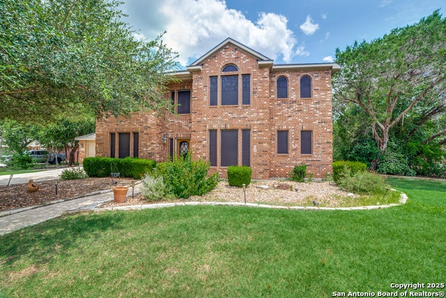 Home, Former Model Home, in Secluded Wind Gate Ranch Subdivision. Gated Community with Easy Access to Culebra Rd & Hwy-211, Enjoy Nearly 0.5-Acre Lot & Great Curb Appeal with Mature Landscaping & Handsome Brick Exterior. Enter to Foyer with Soaring Ceilings Flanked by Formal Dining Room & Separate Office/Media Room. Wonderful Main Living Room with High Ceilings, Woodburning Fireplace, & Large Windows for Lots of Natural Light. Gourmet Kitchen with Center Island, Newer Stainless Steel Appliances, Large Pantry, Great Cabinet Space, Breakfast Area with Access to Back Patio. Spacious Primary Suite Downstairs with Brand-New Carpet & Paint, Full Bathroom with Dual Vanities, Separate Tub/Walk-In Shower, & Huge Closet. Half-Bathroom & Laundry Room Downstairs with Washer/Dryer Connections. 4 Nicely-Sized Bedrooms & 2 Full Bathrooms Upstairs with New Carpet. Backyard Oasis with Large Patio Slab Overlooking Yard with Privacy Fence (Hot Tub not Operational). 2-Car Attached Garage with Opener. Pets Case-by-Case. Northside ISD.