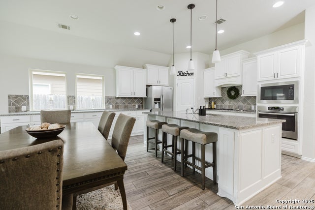| Remarks | $***With an accepted and approved offer, the seller will consider contributing up to $10,000 toward the buyer's closing costs or interest rate buydown-making this incredible home an even better value!*** Stunning Single-Story Home in Kallison Ranch | 4 Bedrooms + Study | Guest Suite | No City Taxes Welcome to this beautifully maintained single-story home located on a quiet cul-de-sac in the highly desirable Kallison Ranch community. This spacious home offers 4 bedrooms plus a dedicated study that can easily serve as a 5th bedroom. One of the secondary bedrooms includes a private full bathroom-perfect for guests or multigenerational living. The open-concept layout features soaring ceilings, abundant natural light, and a gourmet kitchen equipped with an oversized island, granite countertops, and ample space for entertaining. The dining area includes a buffet-style counter offering extra storage and serving space for everyday convenience. Retreat to the luxurious owner's suite with a spa-like bathroom that includes separate vanities, a soaking tub, walk-in shower, and two walk-in closets-one with custom cabinetry designed for shoes, handbags, ties, and accessories. Enjoy outdoor living in the oversized backyard with a large covered patio-ideal for relaxing or entertaining. Additional features include a fully painted and epoxied garage and three outdoor water spigots for added convenience. Community amenities are second to none, including two pools, two playgrounds, a dog park, sports court, walking trails, a fishing pond, and a large pavilion with an outdoor kitchen and BBQ area. Located near the upcoming H-E-B at 211 & Culebra, top-rated NISD schools, shopping, dining, and major highways. No city taxes! |