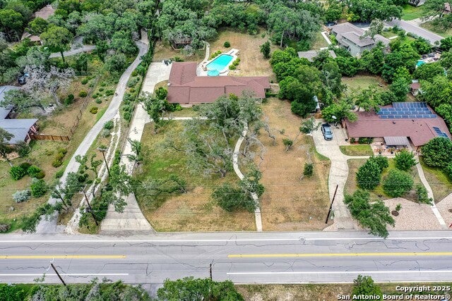 Remarks | $RARE FIND - ELEGANT, MID-CENTURY SINGLE STORY ESTATE HOME WITH POOL ON MORE THAN AN ACRE JUST OUTSIDE 410 & ACROSS THE STREET FROM CASTLE HILLS! Oh, if only a home could talk ... step one foot into this amazing residence owned for decades by a world famous musical artist to instantly imagine all the parties she has hosted over the decades and the memories made here. Pull off Lockhill-Selma onto a long driveway past a sweeping lawn dotted with oaks to a sprawling brick rancher that welcomes you in to a space brimming with character. Past a charming front porch, a gracious entry opens into a formal living room with picture window and so many amazing mid century elements including custom lattice shutters. The bookshelf itself is a masterpiece! Straight ahead is a formal dining room that opens past elaborate, decorative lattice doors into an office then into the huge family room ideal for entertaining. Here under beamed ceilings find a brick accent wall and long bar with butler pantry for storage. The kitchen sits in the middle of the home with a sink overlooking the backyard. The adjacent breakfast space under a vintage chandelier offers a cozy space to enjoy a coffee. One wing hosts a large atmospheric primary bedroom awash with natural light and featuring a unique custom wood accent wall. The shared bathroom with beautiful vintage tile on the wall and in tub/shower combo offers plenty of counter space on the vanity along with lots of practical storage. In the opposite wing sits another large secondary bedroom and a guest bathroom with vintage tile walk-in shower with bench and sliding glass doors. The attached, side entry two-car garage has loads of storage closets along one wall. Slip out the back door where the party continues with a massive screened-in porch that runs nearly the length of the house. Head outdoors onto the acreage where a gazebo offers some shade in between frolics in the large, well maintained, recently resurfaced swimming pool deep enough to sport a diving board! An outbuilding that needs work once served as a casita and later an office has plumbing for a full bathroom. Use your imagination on the rest of the remainder of the 1.3 acre, level lot or just enjoy its natural beauty under the shade of mature trees. All this in an incredibly convenient location -- between Northwest Military and Blanco, less than a mile off Loop 410 right in the heart of North San Antonio, peaceful yet surrounded by shopping and restaurants. Get to North Star in 5 minutes, the Pearl and downtown in 15. Currently zoned for popular NEISD schools including Castle Hills Elementary, Eisenhauer Middle and Churchill High. This once-in-lifetime gem is ready for you to revel in her truly original character or to renovate to Mid-Century Modern. See it to believe what an incredible opportunity this home is coupled with an incredible location! Hurry! |