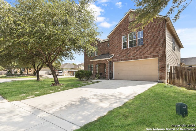 MOTIVATED SELLER! BRING YOUR OFFER FOR CONSIDERATION. CONCESSION AVAILABLE FOR CARPET AND CLOSING. This home offers a spacious backyard-ideal for entertaining or you can transform it into your personal outdoor oasis. Filled with natural light, it combines comfort and functionality in every room. The first floor features a welcoming open-concept layout with a spacious kitchen that includes a dining area, plus both a living room and a separate TV room-perfect for hosting or relaxing with family. Upstairs, the primary suite includes two closets: a walk-in closet off the bathroom and an additional closet in the bedroom. The en-suite bath features a garden tub, glass-enclosed shower, and double vanity. Three additional bedrooms and a generously sized game room complete the second floor, offering plenty of space for guests, hobbies, or a home office. Mature trees enhances the front yard, providing comfort and curb appeal by blocking the morning sun. This home is on Schertz ISD, near Randolph AFB and major roads. The exterior of home has been freshly painted. Don't miss this opportunity to own a stunning two-story home situated on a desirable 0.204-acre corner lot.