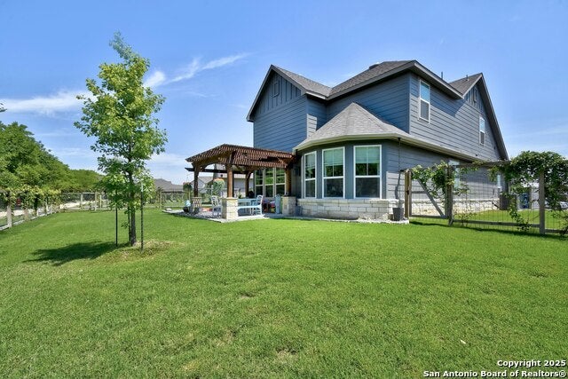 Modern home w/easy commute! Step into this stunning 4-bedroom, 3-bath home in Schertz that perfectly blends modern elegance with everyday comfort. The bright, open-concept living space flows into a chef's kitchen with a granite island, stainless steel appliances, and ample cabinetry-ideal for cooking and entertaining. The private main-floor primary suite features a spa-inspired bath and walk-in closet, while an additional downstairs bedroom offers flexibility for guests or a home office. Upstairs, a versatile loft, two spacious bedrooms, and a dedicated media room provide endless options for family living and fun.Enjoy Texas evenings in your oversized backyard with a covered patio, perfect for BBQs and gatherings. Living in The Crossvine means access to top-tier amenities: a resort-style pool, clubhouse, jogging trails, sports courts, and playgrounds-a true lifestyle community! Conveniently located near Randolph AFB, top-rated schools, shopping, and dining, this home checks every box for comfort, convenience, and style.