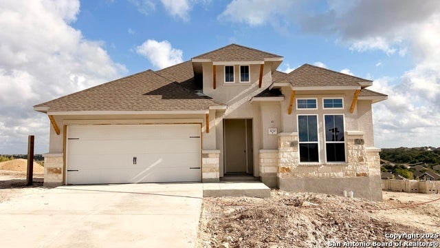Welcome to the stunning Bryan floor plan! You'll immediately fall in love with this thoughtfully designed home, featuring a modern and inviting exterior paired with an abundance of natural light and spacious interiors. As you enter, you're greeted by a generous foyer adorned with beautiful wood floors that flow seamlessly through the main areas of the home. With 4 bedrooms and a private study, this layout offers the perfect space for everyone. The chef in the family will delight in the gourmet kitchen, equipped with top-of-the-line stainless steel built-in gas appliances and an oversized island that overlooks the great room. The family room itself is a highlight, featuring large windows and soaring ceilings that fill the space with light and warmth. The primary suite is a true retreat, boasting two spacious separate closets, dual vanity spaces, and a comfortable shower area that overlooks the garden tub, ensuring a bright and refreshing start to your day. Step outside to discover the popular Texas-sized patio, ideal for family celebrations and outdoor gatherings. Situated in the exclusive gated section of Ladera, come visit this exquisite home today!