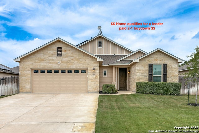 | Remarks | $PREFERRED LENDER IS GIVING UP TO 1% IN BUYERS CLOSING COST. This = less cash to close. Welcome to this nearly new beautiful 4-bedroom, 3-bath, single-story home built in 2019, located in the highly desirable Williamsburg Meadows community in Pleasanton. Offering the comfort of an existing 10-year builder warranty, this home is move-in ready with upgrades and added value you won't find in new construction. Step through the charming arched entryway and you're greeted by a bright, open floor plan with soaring ceilings and a spacious family room. A custom TV arch with tile accents and a faux electric fireplace adds both warmth and seasonal ambiance during the fall and winter months. The large, open kitchen features a functional island-perfect for casual dining, family gatherings, or entertaining guests. The oversized master suite provides a true retreat, complete with a spacious master bath and walk-in closet for ultimate comfort and storage. Enjoy the lushly landscaped backyard and peaceful covered porch, ideal for relaxing evenings outdoors. A full sprinkler system in both front and back keeps the yard looking pristine year-round. Solar panels offer energy efficiency and help keep electric bills affordable. This family-friendly subdivision is perfect for any stage of life-first-time buyers, growing families, or retirees. It's conveniently located just a short drive to San Antonio, combining small-town charm with city access. Don't miss the opportunity to own this nearly new, move-in ready home with all the extras already in place. Schedule your showing today! |