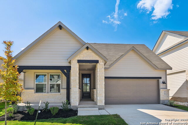 Brand new, energy-efficient home available by Sep 2025! Debate what to wear in the Preston's impressive walk-in closet located just off the private primary suite bath. Sizeable secondary bedrooms are ideal for kids or guests. The spacious living area flows seamlessly outdoors to the covered back patio. Starting in the $400s, Estancia Ranch spans approximately 170 acres in Far North San Antonio. This community offers exceptional amenities, including a community pool, covered pavilion, playground, and dog park. Conveniently located near Loop 1604 and US 281, residents enjoy easy access to shopping, dining, and entertainment. The community is served by the Comal Independent School District. Each of our homes is built with innovative, energy-efficient features designed to help you enjoy more savings, better health, real comfort and peace of mind.