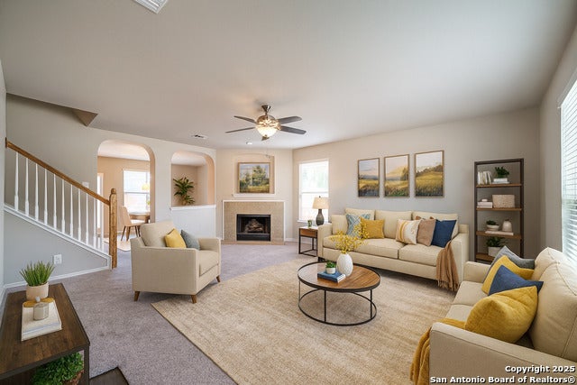 RARE GATED COMMUNITY! Spacious charmer in Woodlake Park seeks new owner! This cozy two story layout features a bright living room with a cozy fireplace, a formal dining area, and a breakfast nook off the kitchen. Upstairs offers a versatile loft/lounge and a private primary suite with a walkin closet. Enjoy the patio and generous backyard with mature trees, perfect for relaxing or entertaining. Conveniently located near Randolph AFB, shopping, dining, and major highways. Schools are zoned in Judson ISD with award winning academic and athletic programs to give children the edge to succeed. Don't delay, schedule your visit today... will not last.