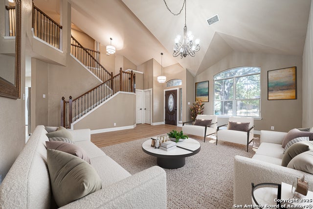 -SELLER FINANCE AVAILABLE- Welcome to 228 Bright Chase, a stunning 3,015 sq ft residence located in the heart of San Antonio, Texas. This beautifully designed home offers 4 spacious bedrooms, 3 full bathrooms, and a half bath, all nestled in a prime location just five minutes from SeaWorld with easy access to Loop 1604 via Military Drive. The main floor features an extra-large master suite with a spa-like bathroom complete with an oversized walk-in shower built for two, elegant finishes, and large windows that flood the room with natural light. The sprawling living area showcases a stone fireplace and dramatic two-story cathedral ceilings, creating a warm yet grand ambiance. The fully remodeled kitchen is a chef's dream, boasting quartz countertops, a deep chef's sink, a dedicated breakfast nook, a walk-in pantry, and abundant cabinet space. Beautiful white oak flooring flows throughout the home, complemented by elegant light fixtures that enhance its sophisticated appeal. Upstairs, you'll find a dedicated guest suite with vaulted ceilings, a full bath, and a walk-in closet, along with two additional bedrooms that share a full bathroom. A spacious media or game room offers ample space for a billiards table or a home theater setup. The backyard is ideal for entertaining or relaxing, featuring a large covered patio and an extended deck with plenty of space for a playground. Perfectly situated near abundant shopping, dining, and major employment hubs, this home offers a quick drive to downtown and the airport, making it a rare blend of luxury, comfort, and convenience. Don't miss your opportunity to make this exquisite property your next home. This property is located outside the city limits, providing savings on property taxes, and it qualifies for USDA financing with a 0% down payment making it an exceptional opportunity for buyers. Don't miss your chance to make this exquisite property your next home.