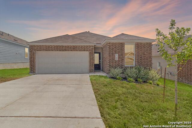 Move in ready, single story home provides ample space to live and grow that is move in ready on a greenbelt lot! An open-concept floorplan combines the kitchen, dining area and family room, with convenient access to a covered patio for seamless entertaining and relaxation. Kitchen has quartz counter tops, stainless appliances, gas cooking, and modern cabinets. Two secondary bedrooms can be found off the foyer, and the luxe owner's suite is tucked away into a private corner at the back of the home, offering direct access to an en-suite bathroom, oversized shower, double vanity, and roomy walk-in closet. Water softener, refrigerator and garage door opener included. Exterior features sprinkler system, screen door leading to oversized covered porch for the neighborhood!