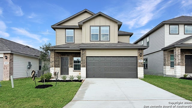 Introducing The Hanna, a two-story home featuring 4 bedrooms, 2.5 baths, and a 2-car garage at Stonehill, a new home community in San Antonio, TX. Here you will find a beautiful open-concept layout with 2042 square feet of functional living space. Your kitchen, dining area and family room blend together seamlessly with plenty of room for everyday living as well as plenty of natural light from the large windows. The gourmet kitchen includes quartz counter tops, stainless steel appliances, shaker style cabinetry and a kitchen island overlooking the living area. The main bedroom suite is downstairs and features quality carpet flooring and an attached bathroom complete with separate water closet, quartz vanity counter top, tiled walk-in shower and a large walk-in closet. The second story includes a full bathroom, a game room, and all secondary bedrooms. Whether these rooms become bedrooms or other bonus spaces, there is sure to be comfort. Additional features of The Hanna floor plan include sheet vinyl flooring in entry, living room, and all wet areas, quartz bathroom counter tops throughout the home, and rear covered patio (per plan) over looking full yard landscaping and irrigation. This home includes our HOME IS CONNECTED base package. Using one central hub that talks to all the devices in your home, you can control the lights, thermostat and locks, all from your cellular device.