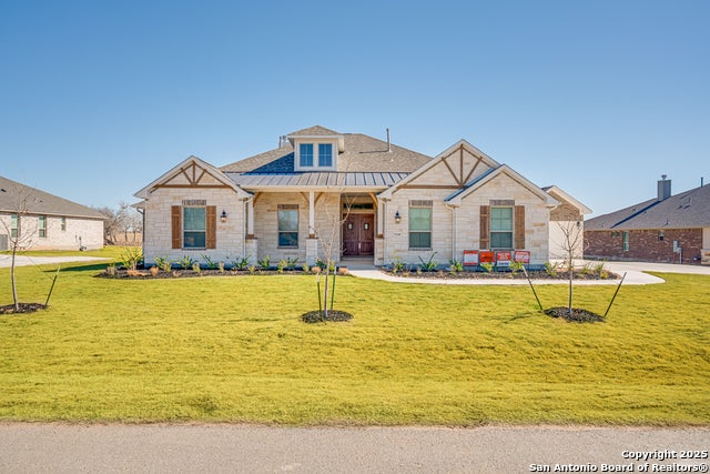 Remarks | $Hill Country Elegance Meets Modern Comfort in Everly Estates Step into refined luxury with this exquisite single-story Texas Hill Country home, perfectly positioned on a spacious 0.53-acre lot in the tranquil Everly Estates community. Spanning 3,391 sq. ft., this newly built masterpiece by Empire Communities offers 4 generous bedrooms, 3.5 bathrooms, and a layout designed for both everyday living and grand entertaining. From the moment you arrive, the double front doors and wide coffered-ceiling foyer set a sophisticated tone. Soaring vaulted ceilings in the family room, dining area, and kitchen create a light and open ambiance, while a wall of windows frames picturesque views and opens effortlessly to a large covered patio-perfect for alfresco gatherings. The gourmet kitchen is a chef's dream, featuring an oversized island, double ovens, and custom cabinetry designed for both style and functionality. The primary suite offers a true retreat with its vaulted ceilings and spa-like en-suite bathroom, complete with a garden tub, dual vanities, and his-and-her walk-in closets. Additional highlights include a private study, spacious game room, a full Smart Home package, and a three-car garage. Outside, the home is equipped with a smart irrigation system and energy-efficient features, delivering comfort, convenience, and sustainability. This home offers the serenity of Hill Country living with the convenience of city access. This is your opportunity to own luxury, new construction in one of the area's most desirable communities. |