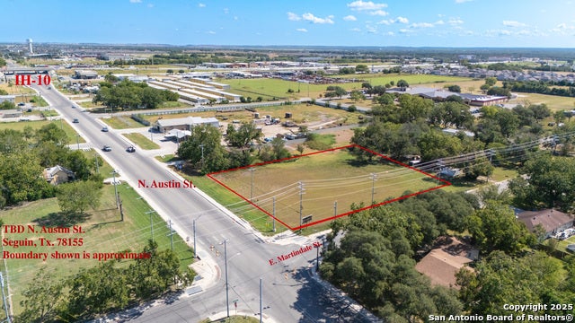 1.2 acre commercial lot and only 1/3 mile from the IH10 corridor. This corner lot is located along Austin St, which is a major artery that connects IH10 with downtown Seguin. This is an opportunity in one of the fastest growing small towns in the country. This site features 210 feet of frontage along Austin St. and 252 feet of frontage along Martindale St. The City of Seguin has waterlines along the west and south side of the lot with a waste water line along the south side of the lot.