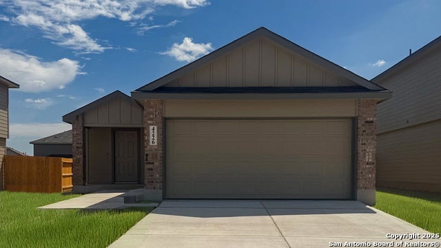 The Estero is a charming one-story home featured in Preserve at Medina in Von Ormy, TX. Featuring 2 classic front exteriors, this 4 bedroom, 2 bathroom home also offers 1586 square feet of living space and a 2-car garage. A front porch (per plan) welcomes you into the home and opens to the gourmet kitchen which includes quartz counter tops, shaker style cabinets, stainless steel appliances and an open concept floorplan with the kitchen flowing seamlessly into the dining room and living room. The main bedroom has an attractive ensuite bathroom that features a quartz vanity countertop, shaker style cabinetry and a spacious tiled walk-in shower. Enjoy additional storage with a large walk-in closet in the primary bedroom. Your secondary bedrooms all feature quality carpet flooring and a closet, and can be used as bedrooms, offices, work out spaces or other bonus rooms. The possibilities are endless with The Estero floor plan. Additional features include sheet vinyl flooring in entry, living room, and all wet areas, quartz counter tops in all bathrooms and HOME IS CONNECTED base package. Using one central hub that talks to all the devices in your home, you can control the lights, thermostat and locks, all from your cellular device.